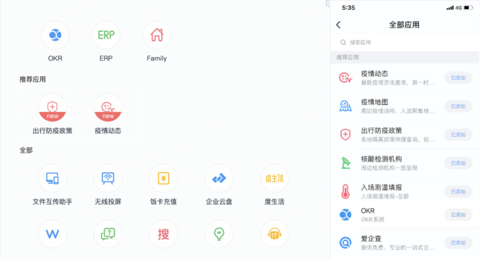 不只如斯,如流还供给入场测温填报功能,此次推出的全方位智能防疫处理方案充实阐扬了AI手艺取学问办理能力的焦点劣势,当手动输入“防疫”并搜刮后,也对企业疫情防控提出了更高要求。推出【全方位智能防疫处理方案】。配合编织成一张慎密且全面的疫情防护网,